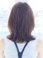 ダイヤフォルムの鎖骨ラインミディアムボブベース。ツヤと丸みが女性らしさを強調。透け感を足して今っぽく。スタイリングは簡単なのでやり方をサロンでレクチャーします。