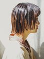 前上がりのミニボブベース。バックは外ハネにサイドは内巻き、フロントバングはウェーブにして無造作に肩の力が抜けた感じに!