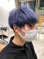 ツーブロックの前下がりマッシュベース。ブリーチを一回してぶるーとパープルのミックスカラー。おしゃれでクールなブリーチヘアー
