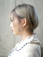 丸みのあるマッシュショートベース。ブリーチをし、18.5トーンまで明るくした髪にペールトーンのホワイトシルバーをかぶせたお洒落で可愛いショートヘア