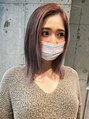 ロングボブベース。ブリーチで表面にチップで、インナーにブロックでハイライトを入れ、全体にピンクシルバー系のカラーリングを!抜けたらミルクティーベージュを目指してます。