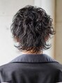 トップ、前髪長めのマッシュウルフベース。平巻きスパイラルをベースにミックスパーマで無造作な質感をつくり、頑張ってない方の力の抜けた感じを演出