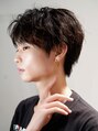 【お気に入りのスタイルはブックマークしてカウンセリングなどにお使いください】センターパートショート。毛先にいくにつれて軽くして無造作でラフなシャドウパーマで動きと毛流れを!