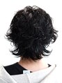 【お気に入りのスタイルはブックマークしてカウンセリングなどにお使いください】前上がりのミディアムレイヤースタイル。襟足は外はね、そのほかはツイストスパイラルパーマで無造作な動きと色気のある雰囲気を!