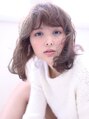 大人かわいいカジュアルスタイル♪厚めバングと、全体の見た目の重さと質感の軽さをミックス!!全体の大きなウェーブで外国人風に♪
