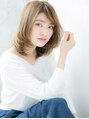 ★お気に入りスタイルは【ブックマーク】を★低い位置につけた段が動きを出して軽やか。毛先にワンカールをつけたまとまりやすいミディアムスタイルです。明るめのベージュカラーにハイライトを入れて!斜めバングが大人かわいい★