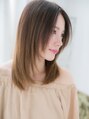 ★お気に入りスタイルは【ブックマーク】を★センターパートとサイドに入れたレイヤーで前下がりフォルムを作り、輪郭をカバーして小顔に見せるナチュラルストレート。明るめのベージュカラーのヴェールカラーでツヤ感UP♪耳かけも大人かわいい。
