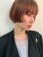 ハイトーンのオレンジ×マッシュボブスタイルマッシュの厚みのバランスを残しながらもコンパクトに収まるスタイルに!暖色系ハイトーンで可愛いさと柔らかさをプラス!