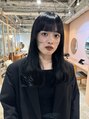黒髪ブルーカラーロングワイドバング顔回りレイヤー前髪髪質改善