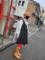 サスーンカットが好きで御来店です。「お任せ」ということで、ばっさりイメージチェンジさせて頂きました。白髪が多いので、ブリーチしてから薄めのオレンジを入れてトータルでコーディネートしてみました。