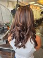 ブラウンベースなハイライトカラーやり過ぎてない良い感じのハイライト良いよね!なデザインカラーをイメージしました!ブリーチを使ってないので負担も抑えてます。巻いても上げても下ろしてもオッケーです。