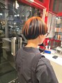 マッシュをベースにしたショートボブスタイルアンダーはブラック、トップにはブリーチしてからイエロー味のあるオレンジをオンしました。メガネなどの小物にも合わせてスタイルを考えます。冬に向けて伸ばしていきます!