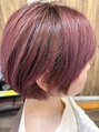 毛先ブリーチ、根本地毛が5センチくらい伸びている状態。レッドバイオレットの少し暗めで統一感をもたせました。