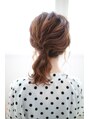 ミディアムスタイルに髪を緩く巻いて一つに結ぶだけで簡単に可愛くなりますよ♪