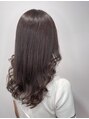 顎下から低めのレイヤーを入れて、毛先に立体感が出るようコテ巻きに。ゆるめカールでエアリーな雰囲気に。カラーは全体は落ち着いた明るさのピンクブラウンに♪