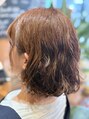 ウェーブを生かしたショートボブスタイルです。パーマでも可能です。広がりを抑えて重めにカット、骨格に合わせてカットすることで収まりが良くなるように意識しました。ボブスタイルなら伸びた時も結びやすくなるのでオススメです!