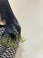 ブリーチベースに根元を暗く残したグラデーションカラー。・○こっくりネイビーブルーと毛先は明るいペールグリーンをカラーバターで☆色の組み合わせはもう無限大ですー!◎