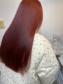 ブリーチなしチェリーレッド。ベースの明るさがあると高発色カラーが可能です◎毛先は厚みを残してぽてっとしたスタイルにしています。#暖色カラー#チェリーレッド#ブリーチなしカラー#ブリーチなしダブルカラー