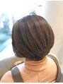 外ハネも内巻きも楽しめる肩ラインのボブスタイルです。ヘアカラーはカーキベージュとアッシュグレージュをミックスしてくすみ感のあるカラーですが髪の保湿ケアをしながら透明感のある仕上がりを意識しました。