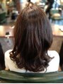ベースに毛先にニュアンスパーマをかけています。ヘアカラーはオレンジ味を抑えたフォギーベージュです。硬さのある髪質を柔らかくしなやかにみせるため、丸みを意識したカットと保湿ケアを定期的にさせていただいています。