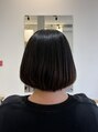オレンジベージュのつるんとボブ
