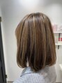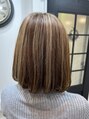 明るめのハイライトカラー。全体的に明るく、さらに立体感が出るのでオススメのカラーとなっております。色味はベージュ系が人気です。