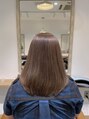 秋らしい薄ピンクのアディクシーカラーでグレージュに。やわらかくてナチュラル、カラーしても沈みにくいダメージの少ないストレートパーマです!