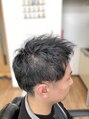 耳上まですっきりツーブロック、バックはスッキリと刈り上げ骨格補正を施し広がりやすいサイドをおさめ、毛量調整質感調整でソフモヒに仕上げました