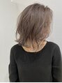 ミディアムの長さでカットし、トップにハイレイヤーを入れてます!動きが出やすくするのがポイント!カラーは、ダークグレーカラーにパープルを、ミックスしてます!仕上げは、コテ巻きでミックスに巻き、スタイリングオイルでセットして完了!