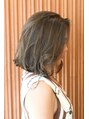 方につく長さで切りっぱなしにして外ハネにして軽やかに見えるようにしています。肩につく長さなので、アイロンもそんなに使わずにセットしています。カラーは、ハイライトを入れてその後に色を入れています。