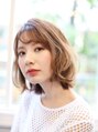 グラデーションボブスタイル。ふんわり感を出すためにトップにストロークカットを施す。ダイヤモンドシルエットがポイント。。毛先は外ハネ、中間はミックスでスパイラルのS字巻き。オリーブアッシュのさりげないコントラストカラーで束感を出す。
