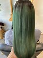 沿岸でお仕事が1ヶ月くらいあったのとブリーチもしてる方だったのでプレミアムコースで最高にいたわりながらカラーしていきました!根本の黒は活かして鮮やかグリーンに!