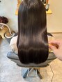 1年前の縮毛矯正に丁寧に繋いで毛先の質感は落とさないようトリートメントで保護しながら伸ばして暗めカラーで艶々、サラサラ絹髪にしました