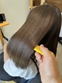 いつもよりアッシュは抑えめでカーキグレージュに持っていきました!元々癖が少ない方なので1年程経っても矯正が効いて綺麗な状態です!