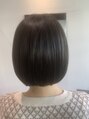 切りっぱなしボブまではいかない少し軽い雰囲気だけどラインの真っ直ぐさ具合は残したナチュラルなスタイルです。カラーは落ち着いているけど透明感のあるグレーブラックに仕上げてみました!