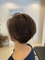 前髪は作らず長めに残しかっこよさをプラスしつつ、後頭部は女性らしい丸みを出す、かっこいい大人丸みショート。お客様の元々あるクセを活かすスタイルに。