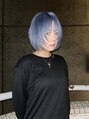 ダークブルーハッシュボブクールデザインダブルカラーブリーチ