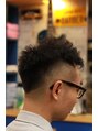 少し個性的なフェードスタイルサイドはバーストフェードを取り入れ、後ろにインパクトを!少し目立ったスタイルをしてみたい方は、ラインよりももっとシンプルかつ、モードなテイストを!