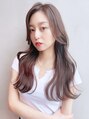 32ミリのコテでゆるく波巻きにしバームを馴染ませる。【気に入ったスタイルは「ブックマークする」ボタンを押して、ご来店時ご提示ください】ミルクティーピンク,アッシュブルー,チェリーピンク,ホワイトミルクティー,グレージュカラー,アッシュブラック