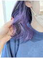 イルミナカラーのディープアメジストのみで作るでサインカラー♪インナーカラーはぶちーち3回と表面にハイライトを入れてディープアメジスト一色で染めています♪鎖骨くらいの長さで外ハネだけでも巻いても可愛い長さです。
