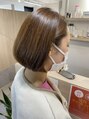 【気に入って頂いたスタイルは、ブックマークをしてご提示ください】前下がりボブ。丸みシルエットのボブに、ベージュブラウンが重く見えがちな硬い髪も柔らかく見えます。ウォーターフォール 幅広い年齢のお客様にご来店して頂いてます。