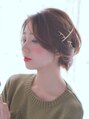 ゆるめに巻いた髪にオイルニュアンスワックスをつけ、ざっくり編み込みゆるくまとめた大人可愛いアレンジです。春ニットにあわせてゆるめのアレンジが可愛くてオススメですよ♪イルミナカラーで赤みを抑え、透明感が出て雰囲気アップ!