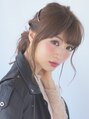 カラーはアッシュベージュで髪を柔らかく透明感を。ゆるくウエーブをつけ、くるりんぱからねじってまとめるだけで女子力高めの大人可愛いポニーテールに♪