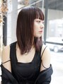 シースルーぱっつん前髪が大人ガーリーな外ハネミディアムレイヤー。ウェットヘアで透明感。耳かけもお似合い。斜めバングやシースルーバング、かきあげ前髪やセンターパートにイメチェンもOK。ベージュピンクやレッドブラウンの暖色系カラーが大人可愛い。