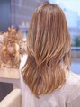 ロングレイヤーでニュアンス感ある動きを出したエアストレート。ストレートでもくせ毛風くびれヘアの仕上がりでヘアアレンジもOK。イヤリングカラーやインナーハイライト、グラデーションカラーで外国人風に。なみなみウェーブやアンニュイヘアもGOOD。