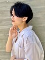 【気に入って頂いたスタイルは、ブックマークをしてご提示ください】baseをレザーカットでシルエットを作り、質感調整で柔らかさを出しました。丸いひし形シルエットはショートの王道です。