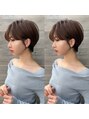【気に入って頂いたスタイルは、ブックマークをしてご提示ください】baseをレザーカットでシルエットを作り、質感調整で柔らかさを出しました。丸いひし形シルエットはショートの王道です。