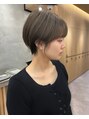 【気に入って頂いたスタイルは、ブックマークをしてご提示ください】baseをレザーカットでシルエットを作り、質感調整で柔らかさを出しました。丸いひし形シルエットはショートの王道です。