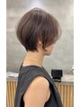【気に入って頂いたスタイルは、ブックマークをしてご提示ください】baseをレザーカットでシルエットを作り、質感調整で柔らかさを出しました。丸いひし形シルエットはショートの王道です。