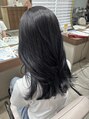 コリアンブラック♪ほんのりネイビーの入った感じがかわいい!/くすみベージュ/韓国風巻き/ブルーカラー/コリアンブラック/韓国ヘア/髪質改善/レイヤーカット/レイヤースタイル/福岡美容室/天神美容室/博多美容室/前髪/顔周り/ロング/学割